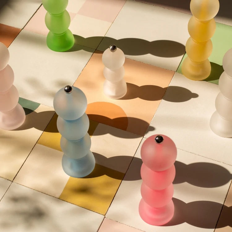 Teak and resin, two materials handcrafted together, bring a splash of color to any setting....