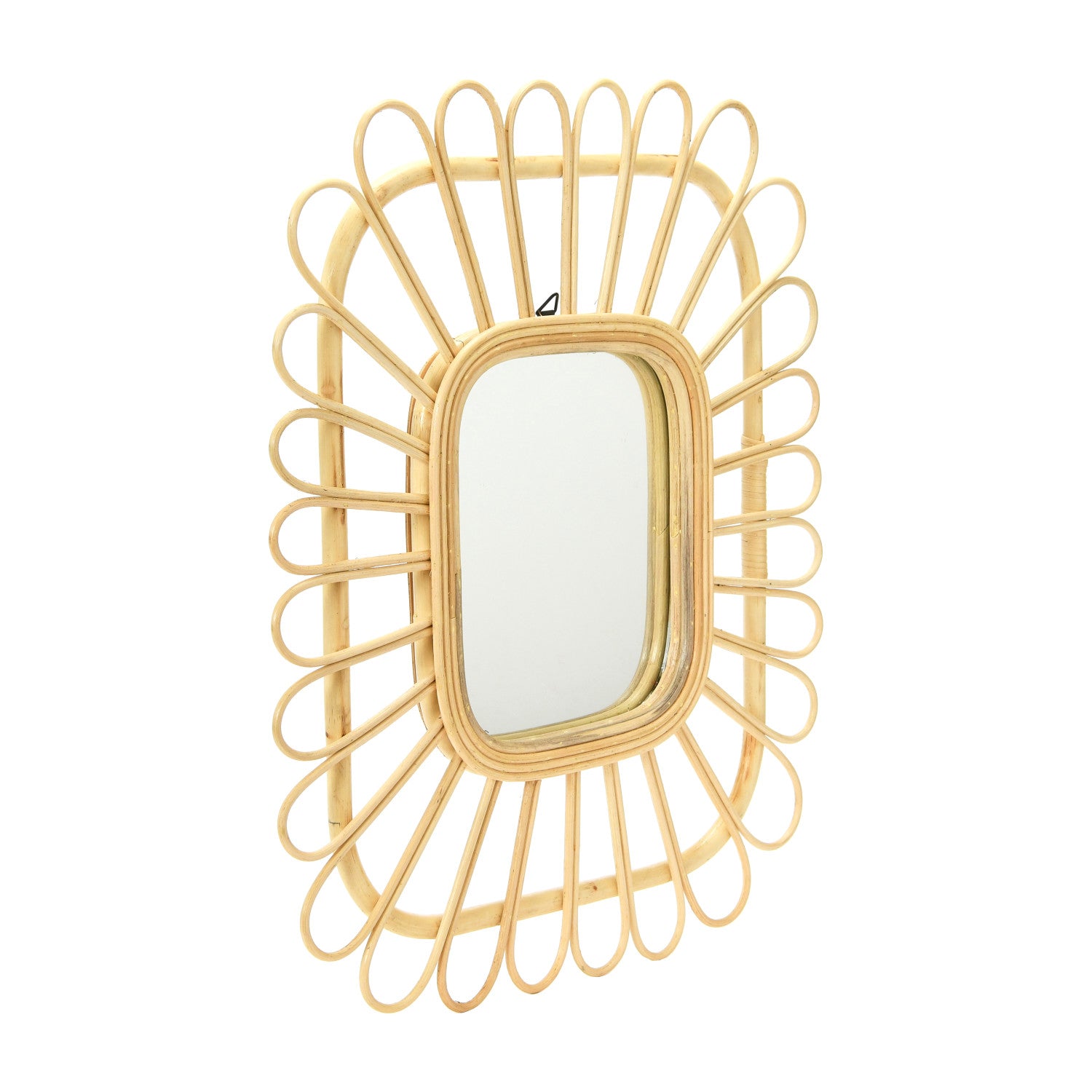 This boho inspired wall mirror features an intricately woven rattan petal frame in a natural...